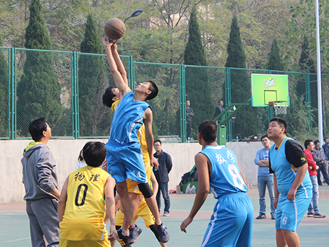 伴随着哨声的响起,比赛正式开始。场上双方随即开始了激烈的角逐。物理学院队员首先夺球进攻并成功突破对方防守先进一球,拿到了第一个二分。此后物理更是一路领先,并将比分优势带到下半场。比赛进行中,场边观众的欢呼声也是一潮高过一潮。