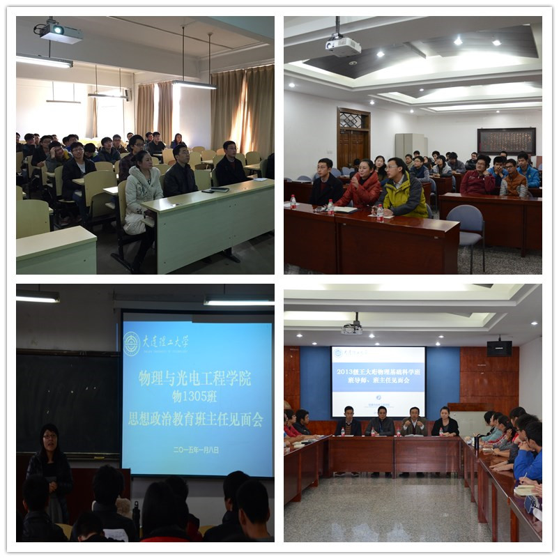 近日,物理与光电工程学院扎实落实我校全员育人方针,大力推进思想政治教育班主任“进班级、进网络、进家庭”的“新三进模式”,于1月7日和1月8日两天先期分别完成6位思政班主任与对口班全体学生的见面工作。学校此次为物理学院配备的6位思政班主任分别为校友工作处副处长邬霞老师、学生工作处副处长张远航老师、心理健康教育与咨询中心应兆升老师、采购与招标管理中心工程招标科科长石忠博老师、党委宣传部理论宣传科科长赫铭老师以及马克思主义学院滕国鹏老师。