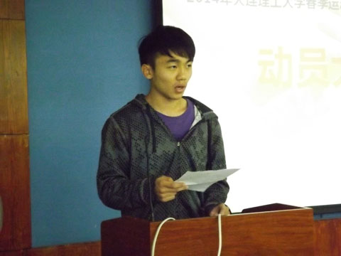 会议开始,先由运动员郝邵泽同学代表我院全体运动员发言,表示了对本次运动会比赛的热情以及积极为我院创造佳绩的信心与决心。随后,主持人分别介绍了各位指导老师及其负责的团体项目,并由各位老师依次简谈了近期指导工作的状况和感想,对所有参加比赛或协助训练的同学们表示期望也给予了极大的鼓励。其中佟西原老师热情而真挚的演讲对大家触动尤深,得到阵阵热烈的掌声。本次动员大会至此圆满结束。